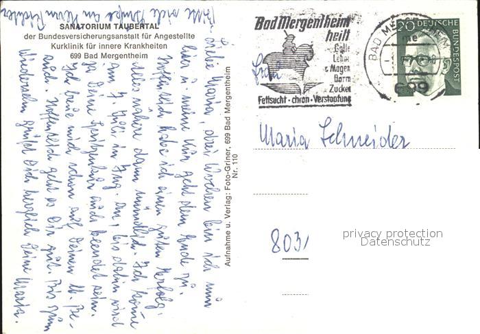 72393200 alte Postkarte Bad Mergentheim Sanatorium Taubertal Kurklinik Gymnastik Park TV Raum Terrasse Speisesaal Spielzimmer Foyer postalisch gelaufen Erhaltung siehe scans KatCode: 11110008128007