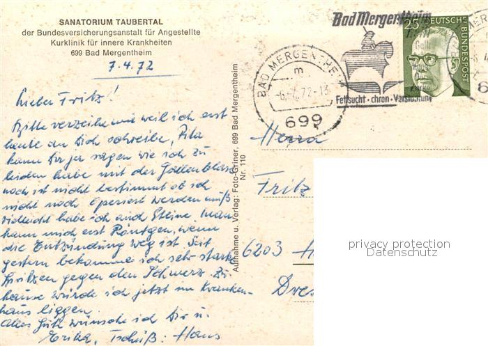 73160854 alte Postkarte Bad Mergentheim Sanatorium Taubertal Kurklinik Gymnastik Veranstaltungsraum Speisesaal Billardzimmer Foyer postalisch gelaufen Erhaltung siehe scans [WerneD78] KatCode: 11110008128007