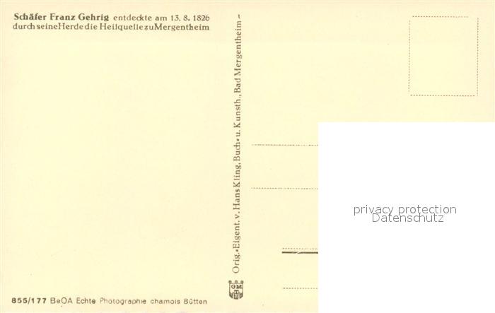 73106234 Bad Mergentheim Schaefer Franz Gehrig Denkmal postalisch nicht gelaufen Erhaltung siehe scans [WerneD78] KatCode: 11110008128007