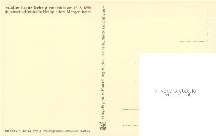 73106270 Bad Mergentheim Schaefer Franz Gehrig Denkmal postalisch nicht gelaufen Erhaltung siehe scans [WerneD78] KatCode: 11110008128007
