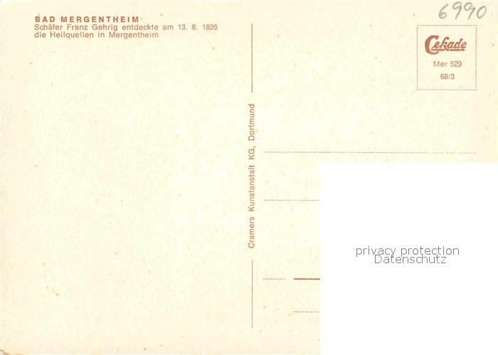 72886909 Bad Mergentheim Schaefer Franz Gehring Skulptur postalisch nicht gelaufen Erhaltung siehe scans [WerneD78] KatCode: 11110008128007