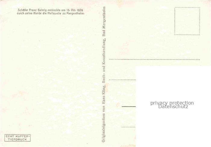 74099874 BAD MERGENTHEIM Schaefer Gehrig Denkmal Hotel Kurhaus Karlsquelle postalisch nicht gelaufen Erhaltung siehe scans [WerneD78] KatCode: 11110008128007