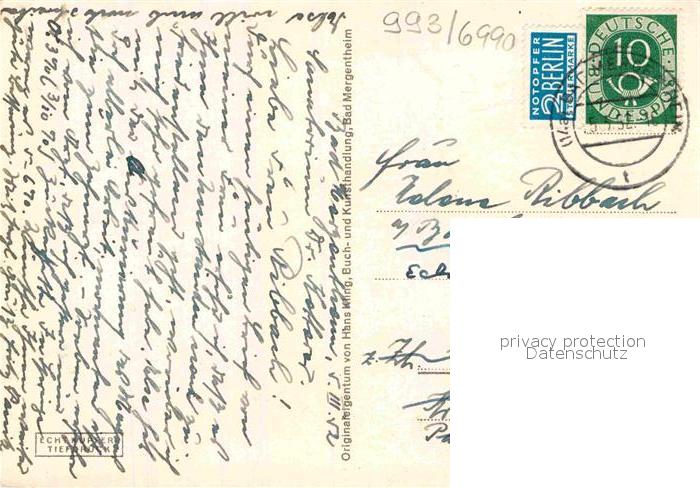 72694080 alte Postkarte Bad Mergentheim Schaefer Gehrig Denkmal postalisch gelaufen Erhaltung siehe scans [FriedD77] KatCode: 11110008128007