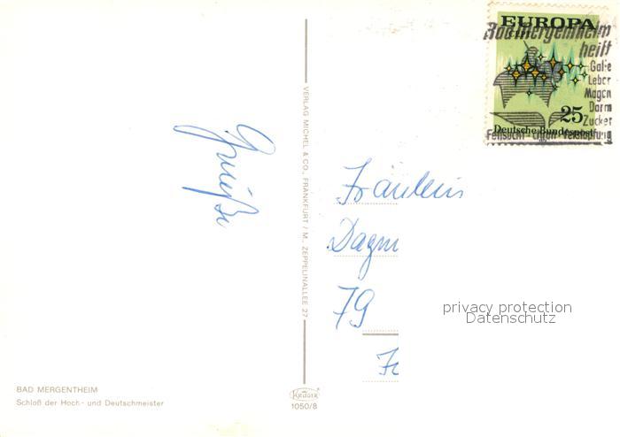 72972618 alte Postkarte Bad Mergentheim Schloss der Hochmeister und Deutschmeister postalisch gelaufen Erhaltung siehe scans [FriedD77] KatCode: 11110008128007