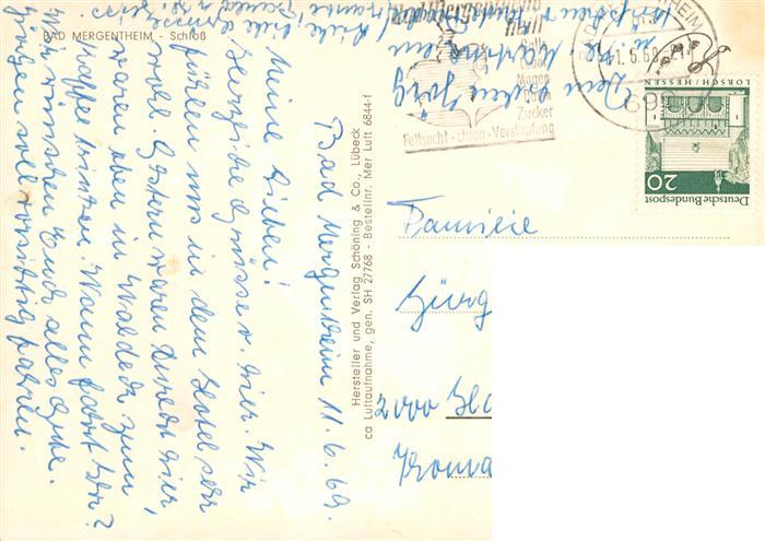 73883977 alte Postkarte Bad Mergentheim Schloss Fliegeraufnahme postalisch gelaufen Erhaltung siehe scans [WerneD78] KatCode: 11110008128007