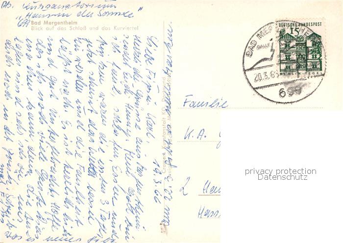 72979591 alte Postkarte Bad Mergentheim Schloss Kurviertel Fliegeraufnahme postalisch gelaufen Erhaltung siehe scans [FriedD77] KatCode: 11110008128007