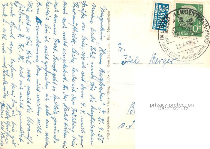 73126891 alte Postkarte Bad Mergentheim Schloss Panorama Tauber postalisch gelaufen Erhaltung siehe scans [KathaD81] KatCode: 11110008128007
