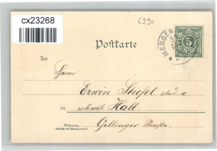 30752000 alte Postkarte Bad Mergentheim Schloss Rathaus postalisch gelaufen KatCode: 11110008128007