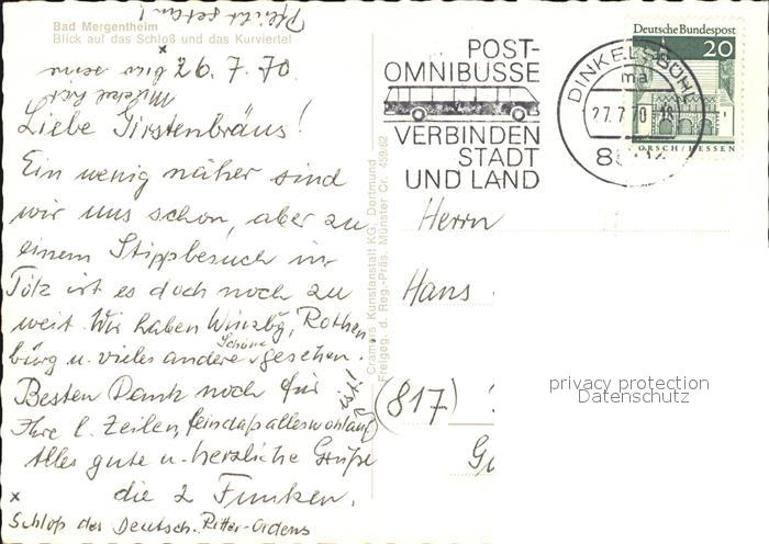 72514614 alte Postkarte Bad Mergentheim Schloss und Kurviertel Fliegeraufnahme postalisch gelaufen Erhaltung siehe scans KatCode: 11110008128007