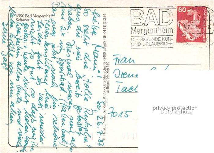 72984563 alte Postkarte Bad Mergentheim Solymar Schwimmbad postalisch gelaufen Erhaltung siehe scans [LiesaD40] KatCode: 11110008128007