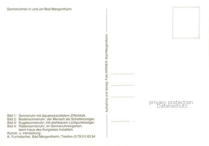73027451 Bad Mergentheim Sonnenuhren Bodensonnenuhr Kugelsonnenuhr Raedersonnenuhr postalisch nicht gelaufen Erhaltung siehe scans [KathaD81] KatCode: 11110008128007