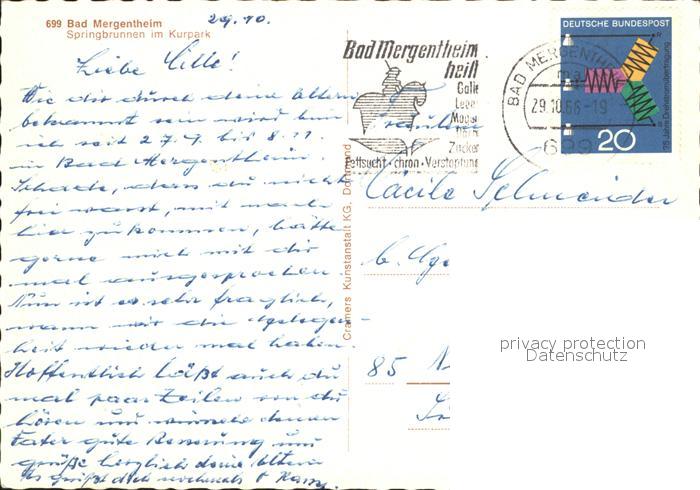 72266271 alte Postkarte Bad Mergentheim Springbrunnen Kurpark postalisch gelaufen Erhaltung siehe scans KatCode: 11110008128007