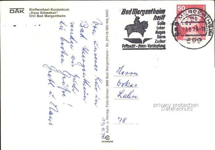alte Postkarte Bad Mergentheim Stoffwechsel Kurzentrum Haus Schwaben postalisch gelaufen Erhaltung siehe scans
