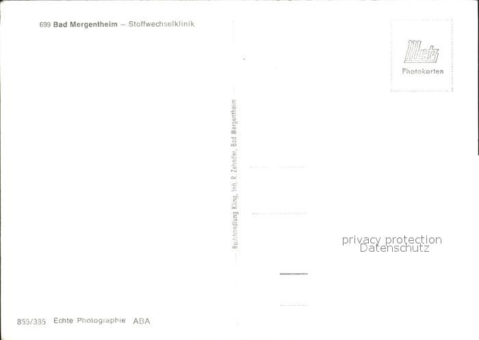 72280674 Bad Mergentheim Stoffwechselklinik postalisch nicht gelaufen Erhaltung siehe scans KatCode: 11110008128007
