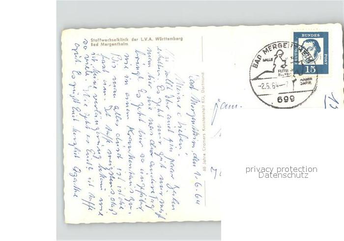 41620138 alte Postkarte Bad Mergentheim Stoffwechselklinik der L.V.A. Wuerttemberg postalisch gelaufen Erhaltung siehe scans KatCode: 11110008128007