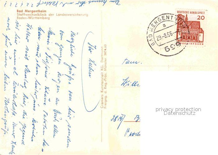 72711621 alte Postkarte Bad Mergentheim Stoffwechselklinik der Landesversicherung Baden Wuerttemberg Fliegeraufnahme postalisch gelaufen Erhaltung siehe scans [FriedD77] KatCode: 11110008128007