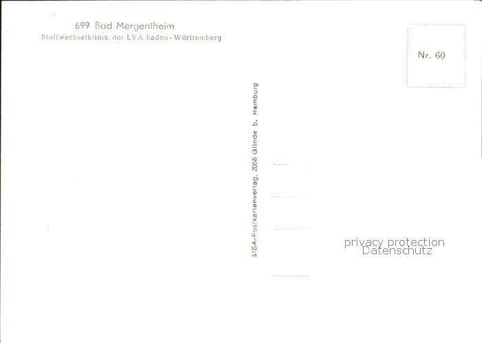 72463797 Bad Mergentheim Stoffwechselklinik der LVA postalisch nicht gelaufen Erhaltung siehe scans KatCode: 11110008128007
