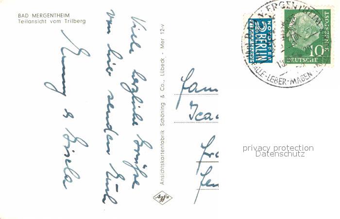 72786777 alte Postkarte Bad Mergentheim Teilansicht vom Trilberg postalisch gelaufen Erhaltung siehe scans [FriedD77] KatCode: 11110008128007