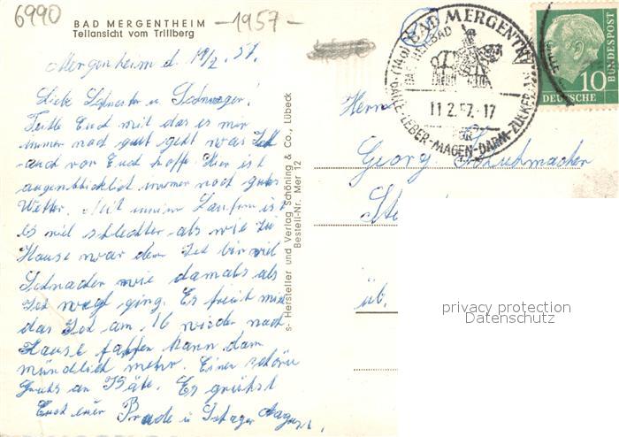 73695439 alte Postkarte Bad Mergentheim Teilansicht vom Trillberg postalisch gelaufen Erhaltung siehe scans [FriedD77] KatCode: 11110008128007