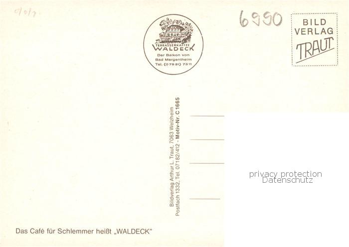 73868511 Bad Mergentheim Terrassen Cafe Waldeck Balkonblick Kaffee Kuchen Vesperplatte postalisch nicht gelaufen Erhaltung siehe scans [WerneD78] KatCode: 11110008128007