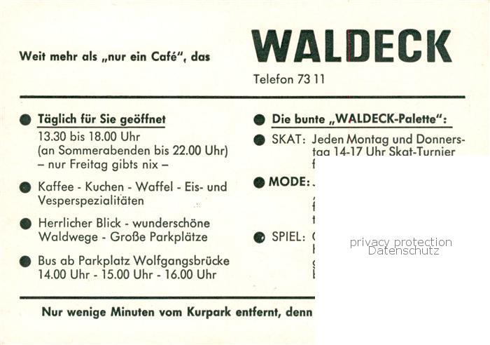 73865046 Bad Mergentheim Terrassen-Cafe Waldeck Fernsicht postalisch nicht gelaufen Werbekarte (keine Postkarte) Erhaltung siehe scans [FriedD77] KatCode: 11110008128007