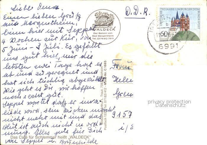 72455736 alte Postkarte Bad Mergentheim Terrassencafe Waldeck postalisch gelaufen Erhaltung siehe scans KatCode: 11110008128007