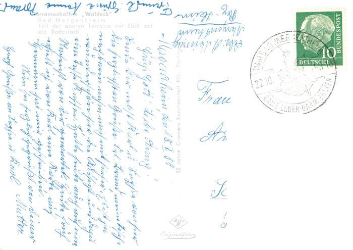 73896235 alte Postkarte Bad Mergentheim Terrassencafe Waldeck postalisch gelaufen Erhaltung siehe scans [WerneD78] KatCode: 11110008128007