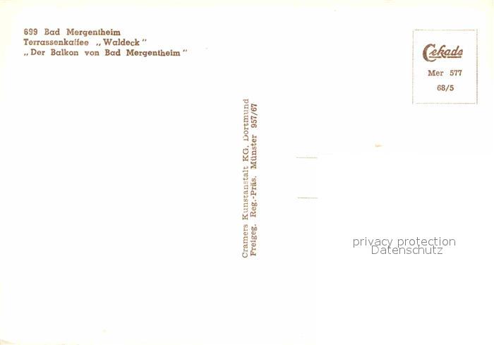 72819701 Bad Mergentheim Terrassenkaffee Waldeck postalisch nicht gelaufen Erhaltung siehe scans [NatalD47] KatCode: 11110008128007