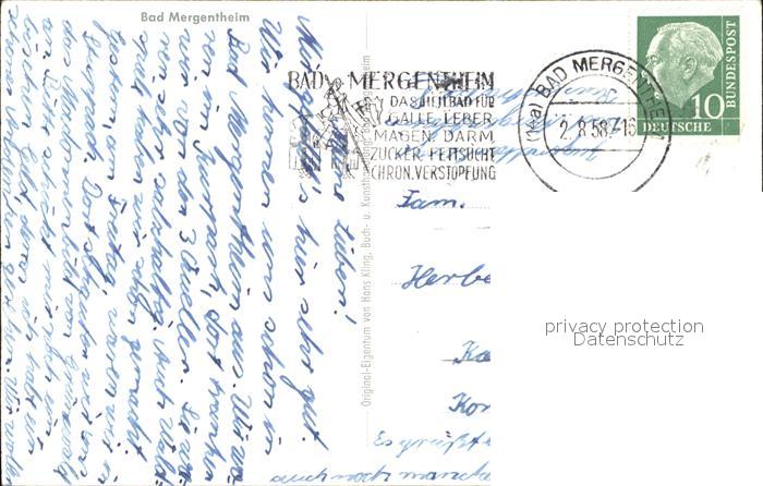 72922190 alte Postkarte Bad Mergentheim Totalansicht postalisch gelaufen Erhaltung siehe scans [WerneD48] KatCode: 11110008128007