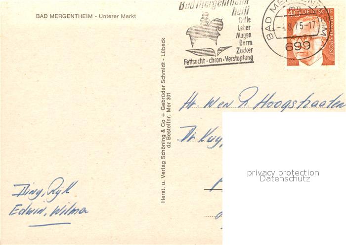 72928627 alte Postkarte Bad Mergentheim Unterer Markt postalisch gelaufen Erhaltung siehe scans [WerneD78] KatCode: 11110008128007
