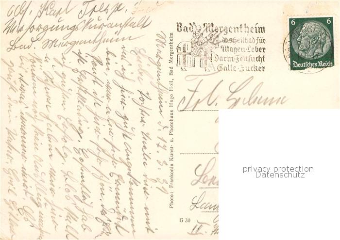 73811643 alte Postkarte Bad Mergentheim Versorgungskuranstalt postalisch gelaufen Erhaltung siehe scans [FriedD77] KatCode: 11110008128007