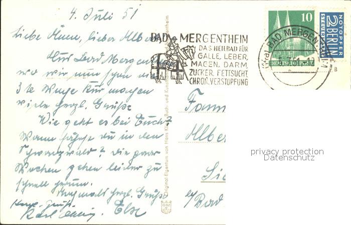 72096226 alte Postkarte Bad Mergentheim Wandelhalle im Kurpark postalisch gelaufen Erhaltung siehe scans KatCode: 11110008128007