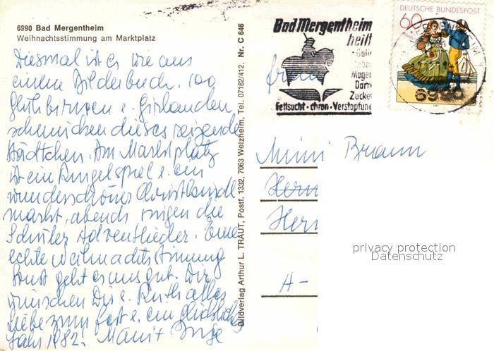 72692990 alte Postkarte Bad Mergentheim Weihnachtsstimmung am Marktplatz postalisch gelaufen Erhaltung siehe scans [FriedD77] KatCode: 11110008128007