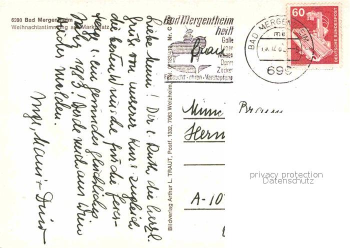72792711 alte Postkarte Bad Mergentheim Weihnachtsstimmung am Marktplatz postalisch gelaufen Erhaltung siehe scans [FriedD77] KatCode: 11110008128007