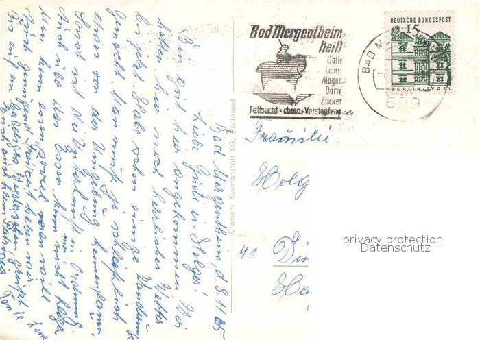 72705195 alte Postkarte Bad Mergentheim Wolfgangsbruecke Marktplatz Kurpark Kurkonzert Kurgarten postalisch gelaufen Erhaltung siehe scans [AndreD76] KatCode: 11110008128007