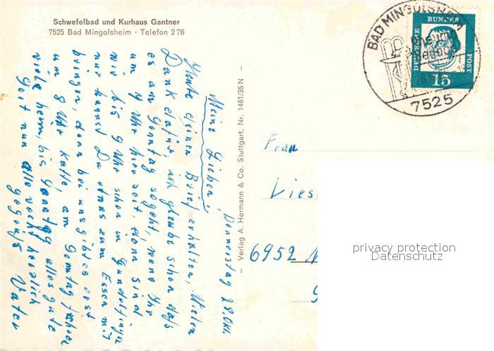 72914021 alte Postkarte Bad Mingolsheim Schwefelbad Kurhaus Gantner postalisch gelaufen Erhaltung siehe scans [KathaD81] KatCode: 11110008215100