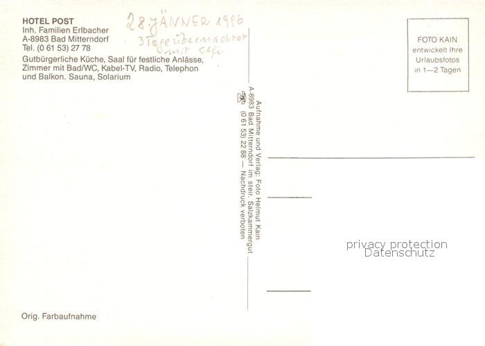 12936222 Bad Mitterndorf Hotel Post postalisch nicht gelaufen Erhaltung siehe scans [AndreD76] KatCode: 11390222061226
