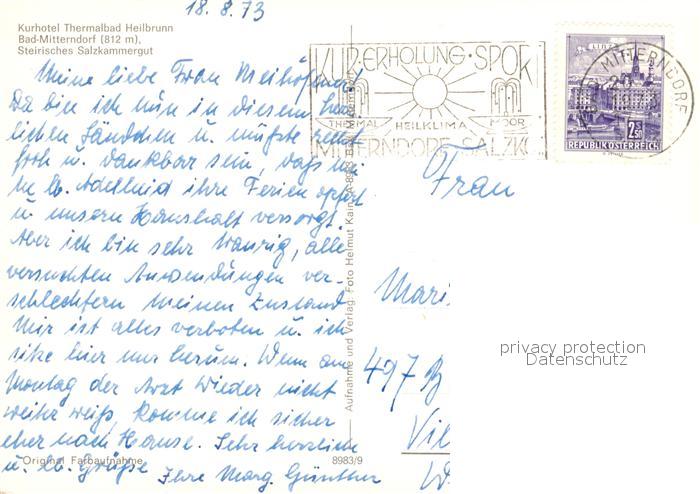 73162162 alte Postkarte Bad Mitterndorf Kurhotel Thermalbad Heilbrunn postalisch gelaufen Erhaltung siehe scans [LiesaD40] KatCode: 11390222061226