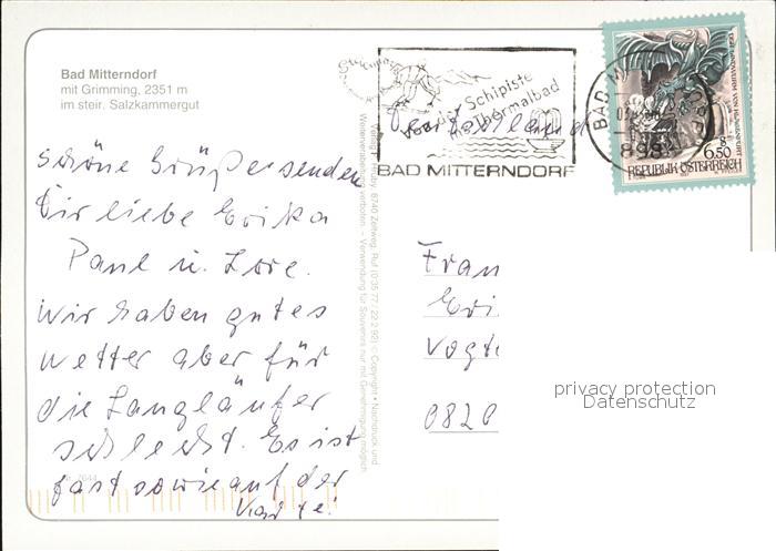 72517952 alte Postkarte Bad Mitterndorf mit Grimming im Salzkammergut postalisch gelaufen Erhaltung siehe scans KatCode: 11390222061226