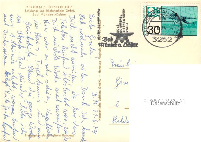 73763302 alte Postkarte Bad Muender Berghaus Deisterholz Fliegeraufnahme postalisch gelaufen Erhaltung siehe scans [WerneD78] KatCode: 11110003252002
