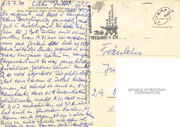 34145179 alte Postkarte Bad Muender Fliegeraufnahme Freibaeder postalisch gelaufen Erhaltung siehe scans [WerneD78] KatCode: 11110003252002