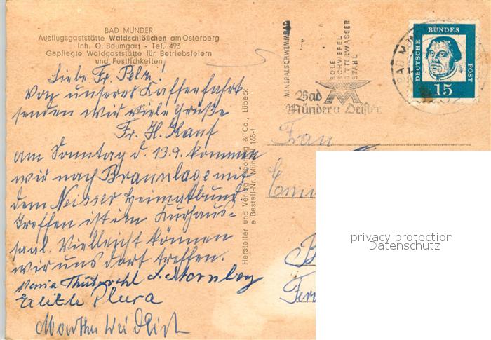73066618 alte Postkarte Bad Muender Gaststaette Waldschloesschen Terrasse Teich postalisch gelaufen Erhaltung siehe scans [WerneD78] KatCode: 11110003252002