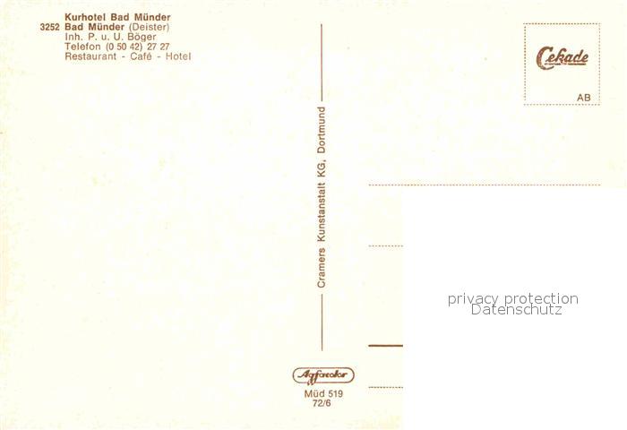 72913675 Bad Muender Kurhotel Restaurant Cafe postalisch nicht gelaufen Erhaltung siehe scans [LiesaD40] KatCode: 11110003252002
