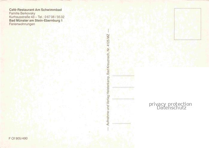 74152831 Bad Muenster am Stein Ebernburg Rheinland-Pfalz Cafe Restaurant Am Schwimmbad Terrasse Speisesaal postalisch nicht gelaufen Erhaltung siehe scans [WerneD78] KatCode: 11110007133007