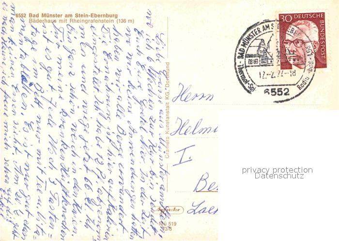 72724253 alte Postkarte Bad Muenster Stein Ebernburg Baederhaus mit Rheingrafenstein postalisch gelaufen Erhaltung siehe scans [FriedD77] KatCode: 11110007133007