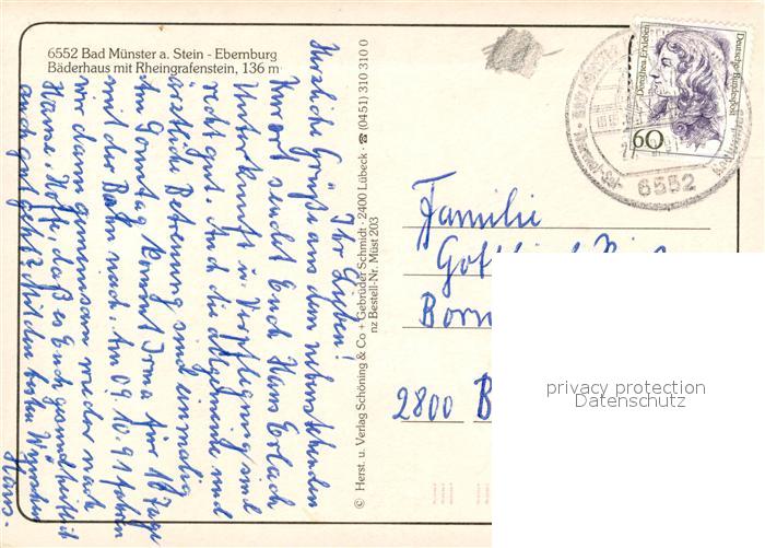 73163411 alte Postkarte Bad Muenster Stein Ebernburg Baederhaus mit Rheingrafenstein postalisch gelaufen Erhaltung siehe scans [WerneD78] KatCode: 11110007133007