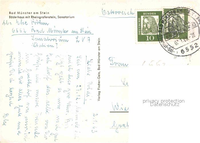 72888983 alte Postkarte Bad Muenster Stein Ebernburg Baederhaus mti Rheingrafenstein Sanatorium postalisch gelaufen Erhaltung siehe scans [LiesaD40] KatCode: 11110007133007