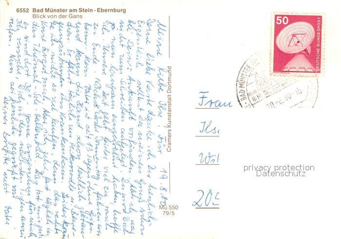 73616147 alte Postkarte Bad Muenster Stein Ebernburg Blick von der Gans postalisch gelaufen Erhaltung siehe scans [WerneD78] KatCode: 11110007133007