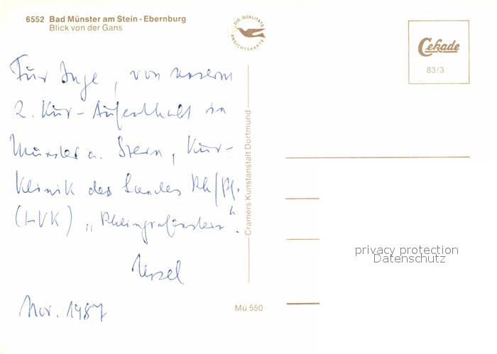 72752706 Bad Muenster Stein Ebernburg Blick von der Gans mit Ebernburg postalisch nicht gelaufen Erhaltung siehe scans [LiesaD40] KatCode: 11110007133007