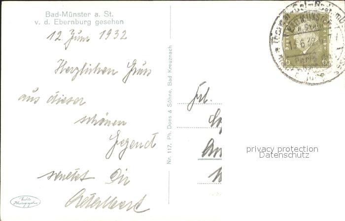 72145423 alte Postkarte Bad Muenster Stein Ebernburg Blick von Ebernburg postalisch gelaufen Erhaltung siehe scans KatCode: 11110007133007